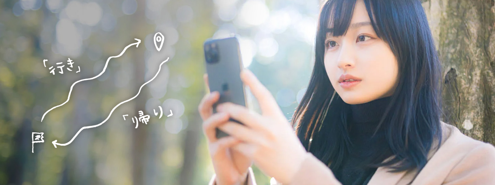 「行き」は出発地点から旅の目的地まで。これから旅が始まるわくわくした気持ちや、目的地に着いたよろこびの様子を撮影します。